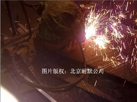 圖(2)堆焊耐磨襯板如有缺陷,可采用焊絲補焊