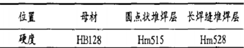 (2) 堆焊層的硬度明顯比母材的硬度高,從而使襯板堆焊后的耐磨性能大大地提高;